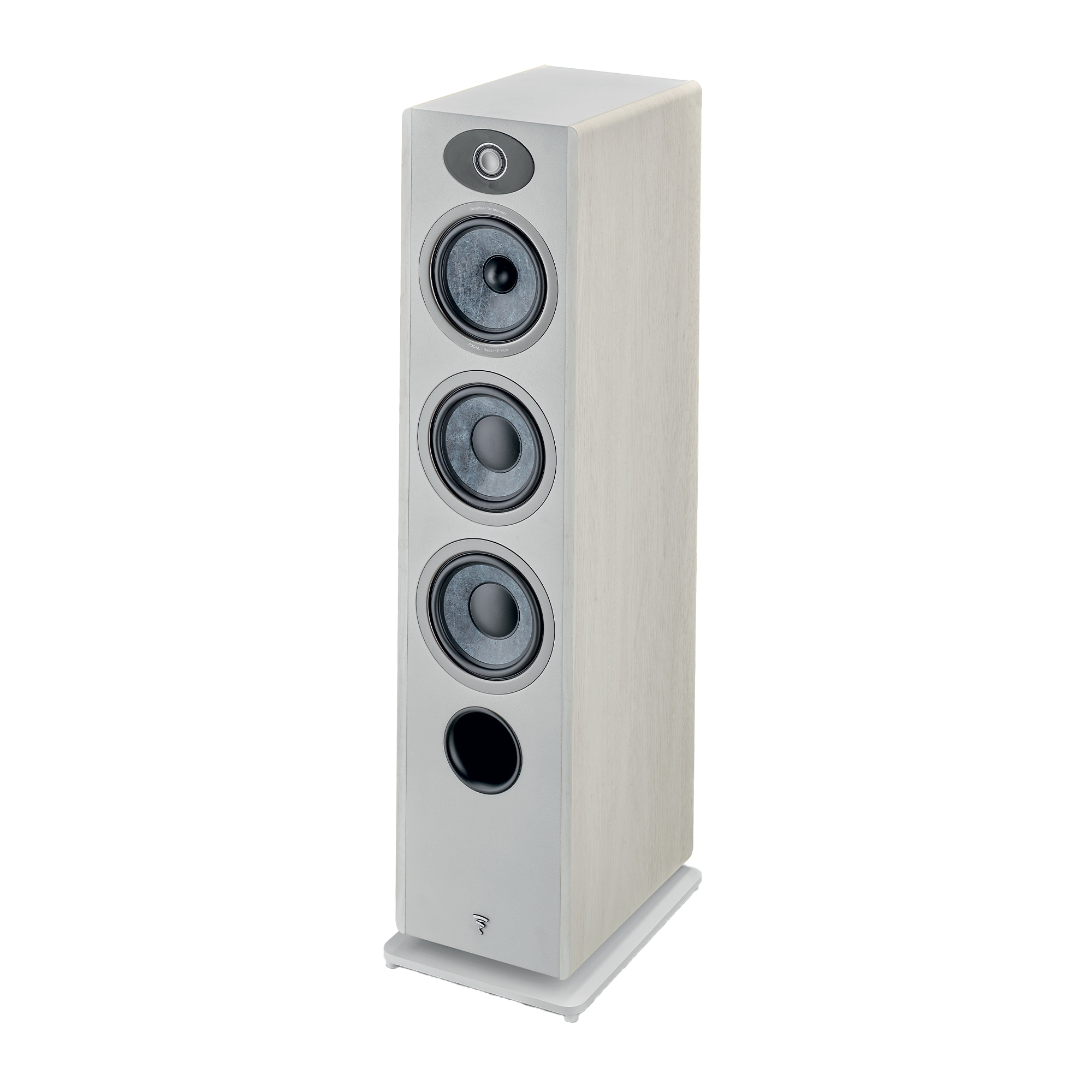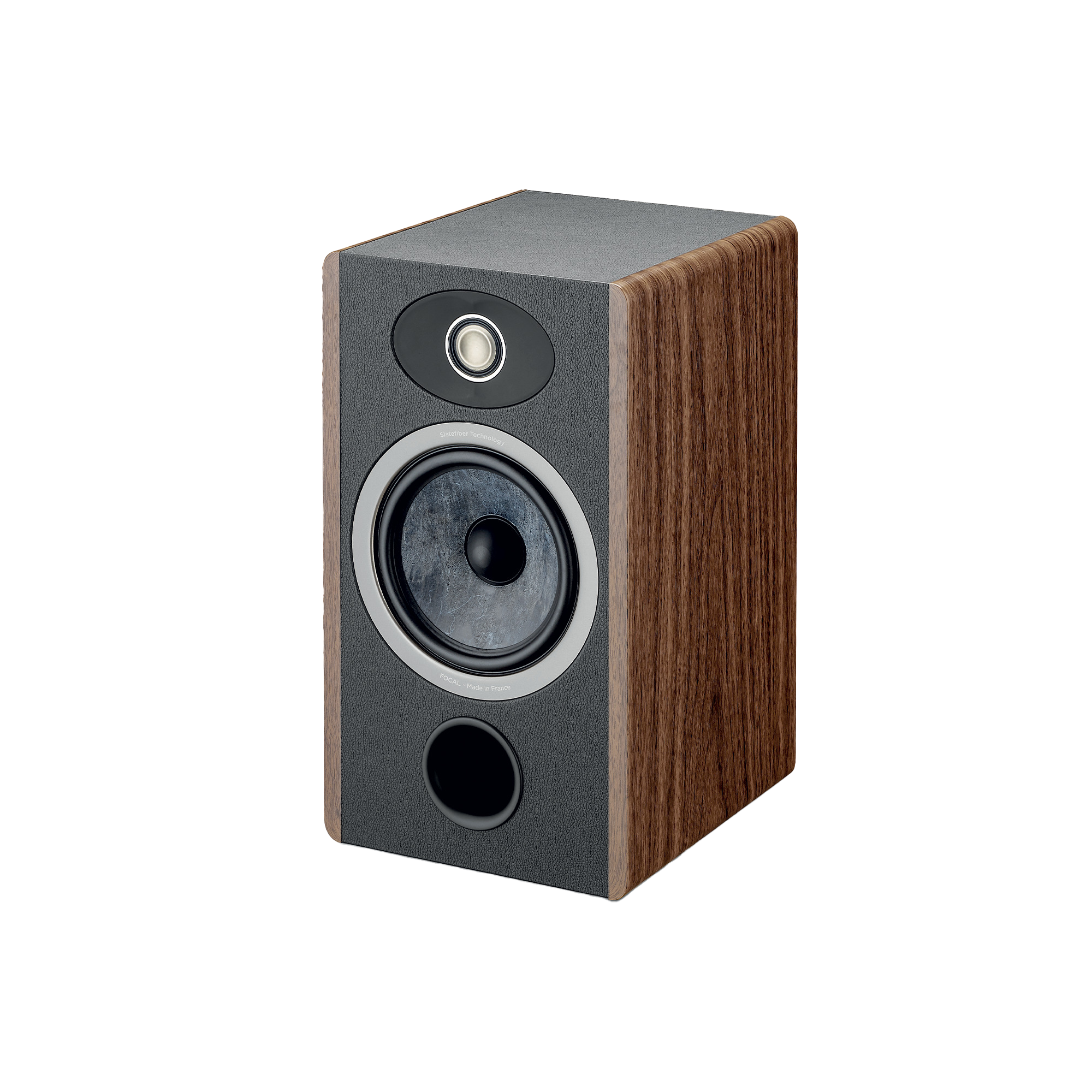 Focal独自のフランス製Slatefiberコーンは、リサイクルカーボンファイバーと熱可塑性ポリマーで作られています。スピーカーコーンのスペシャリストとして完璧さを追求し、エンジニアたちは均一方向に配向した不織布カーボンファイバーを採用することで、優れたスピーカーに不可欠な剛性、ダンピング、軽量性をさらに向上させました。ダイナミックで豊か、そしてバランスの取れたサウンドの再現性で定評のあるこのコーンは、家庭用、レコーディングスタジオのプロフェッショナル、そして車載リスニングなど、数多くの製品でその実力を発揮しています。